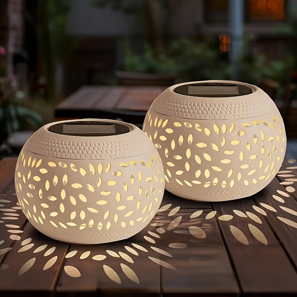 Skapa magisk atmosfär på verandan, i trädgården eller under campingturen med dessa 2 soldrivna utomhuslyktor i elegant keramisk design. Med ett inbyggt 600 mAh batteri, laddas de enkelt av solen och lyser upp kvällen – perfekt för både vardagsmys och julstämning.