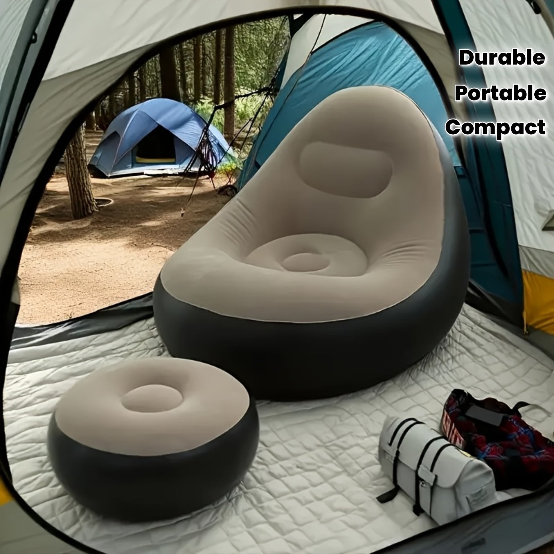 En uppblåsbar fåtölj som gör förtältet lika bekvämt som hemma